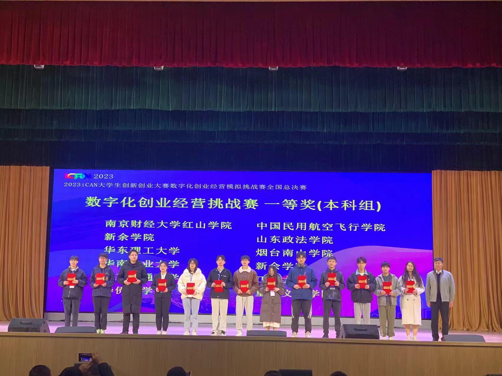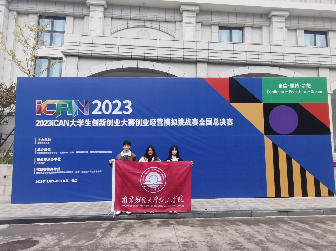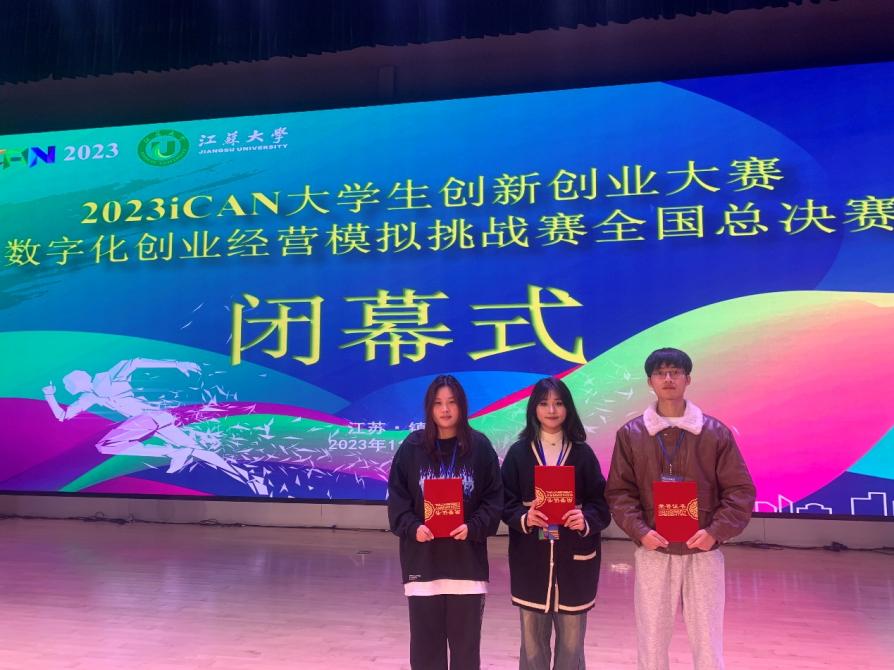 11月24日-11月26日2023iCAN 大学生创新创业大赛数字化创业经营模拟挑战赛全国总决赛在江苏大学隆重举行,由我院学生陈厚余、刘庆羚、赵睿组成的代表队在金融税收系蔡璐老师、工商管理系易婷老师的带领下荣获全国一等奖。