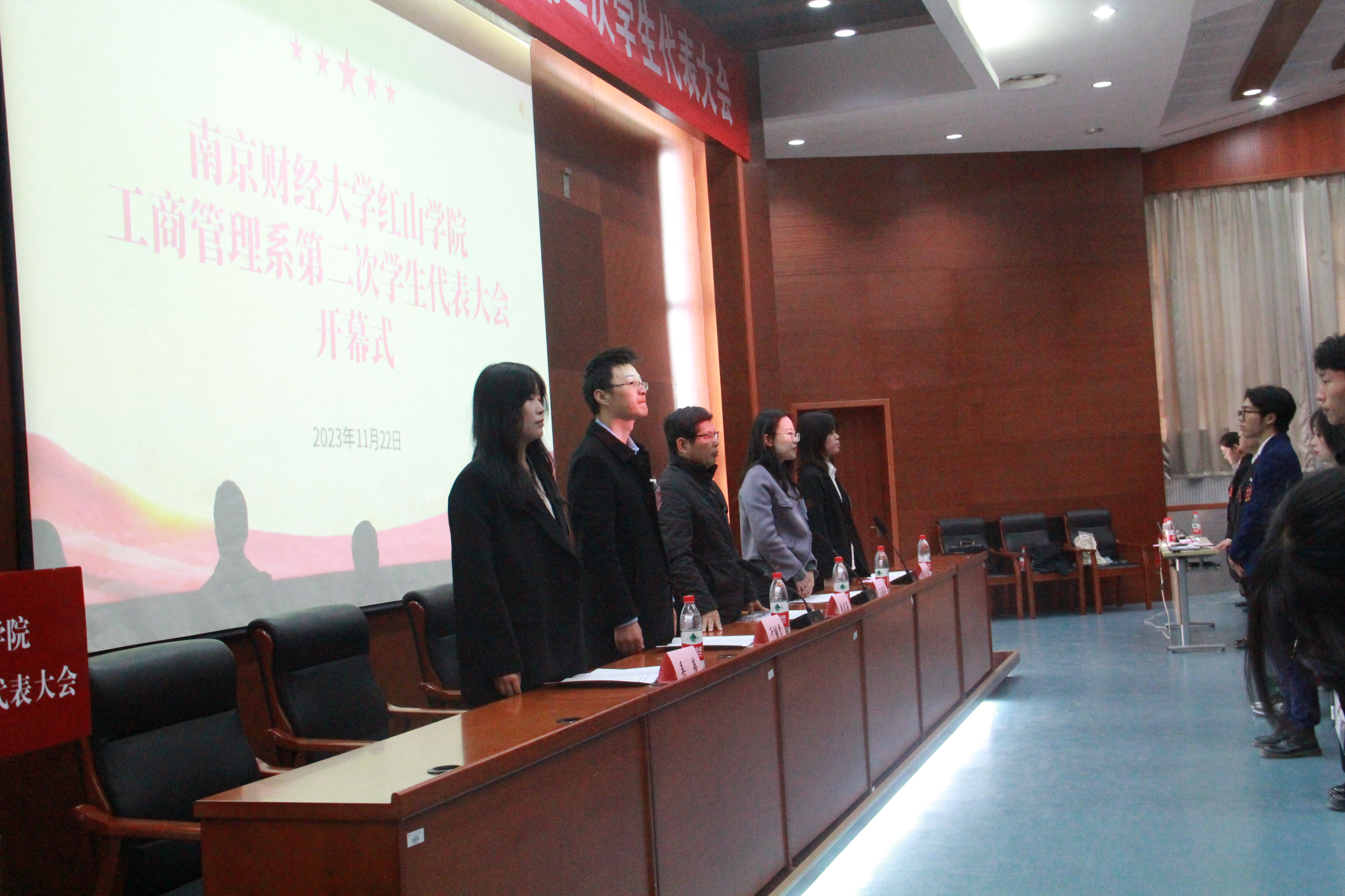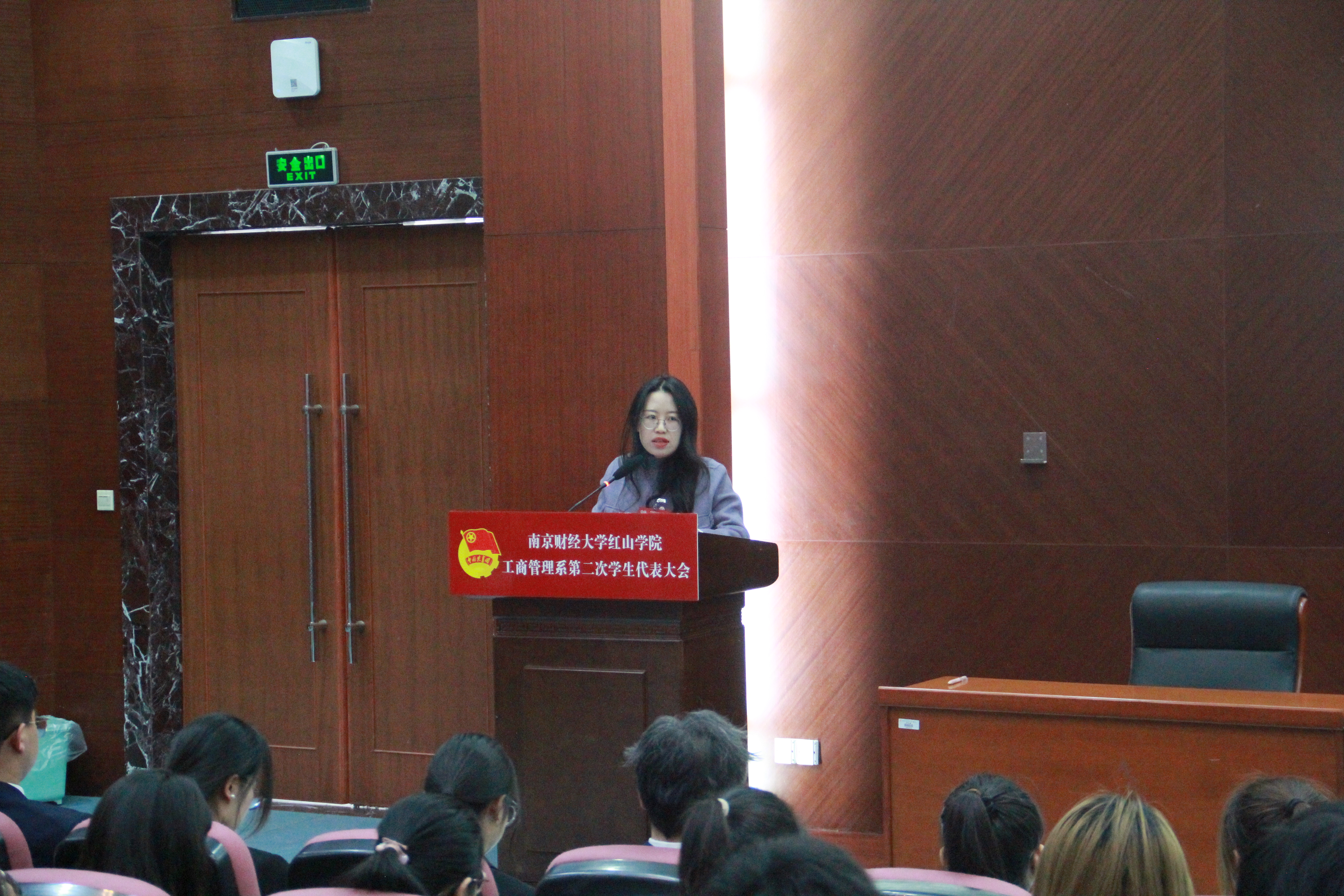 大会在庄严嘹亮的国歌声中拉开序幕。院学生会执行主席刘娟同学代表南京财经大学红山学院学生会向大会的召开表示热烈祝贺,她充分肯定了工商管理系学生会在院团委的指导下,在聚焦思想引领、服务同学权益、关注学业发展、繁荣校园文化和创新工作机制方面发挥了重要作用,并对我系学生会今后的发展提出了更高的要求。工商管理系党总支书记、系主任张太海教授发表了讲话,张书记对接下来的学生会工作提出了明确的要求,也对我系同学成长成才寄予了殷切的期盼,希望新一届工商管理系学生会始终做好思想引领和服务同学的工作,团结带领全系同学,奋发而为,努力成才,为学院的发展、为民族的复兴贡献自己的青春才智。