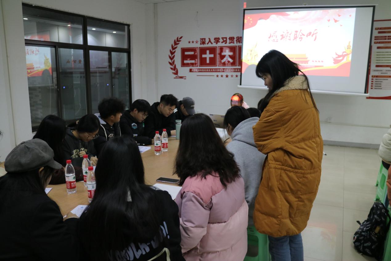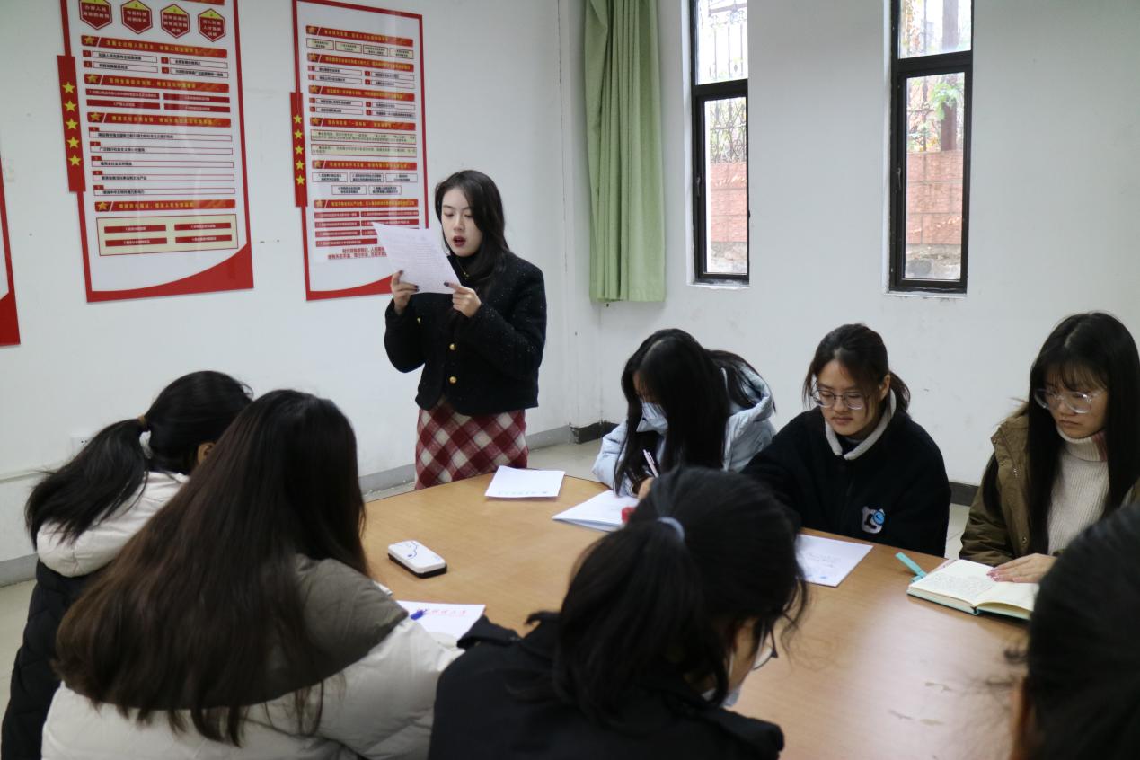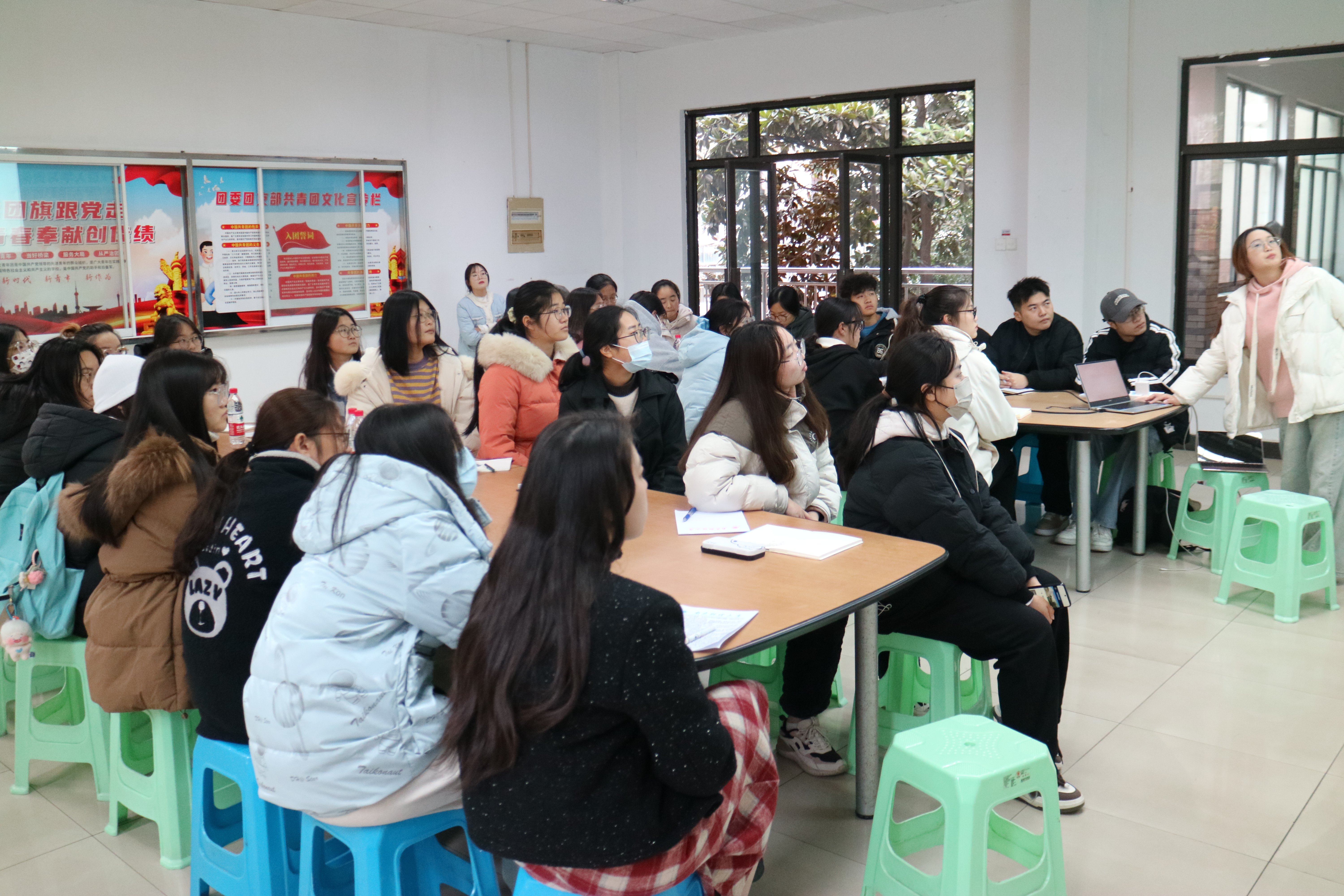 为贯彻落实教育部高校“一站式”学生社区综合管理模式建设工作,提高团员青年的政治素养和学识修养,进一步增强基层团组织凝聚力,强化团员的先进性和使命感,2023年12月13日下午,院学生会执行主席王旭婕于桥头校区一站式学生社区为我院工商管理系人资2352班团支部开展题为“挺膺担当励青春,奋楫笃行向未来”的主题教育示范团课。工商管理系辅导员吕亦怡和班主任吴蓓老师参加了示范课并做点评。