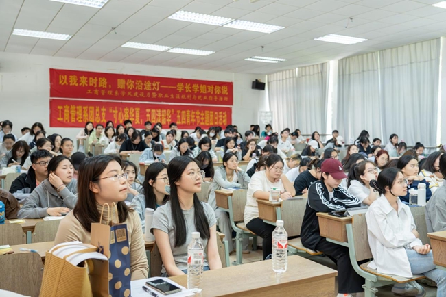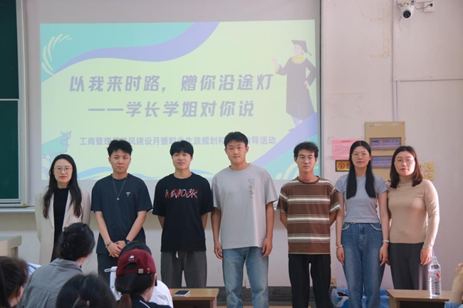 为进一步加强学院学风建设,引领大三年级学生做好职业生涯规划,5月9日,工商管理系团总支在福建路校区J1-102教室举办主题为“以我来时路,赠你沿途灯——学长学姐对你说”学风建设月暨职业生涯规划和就业指导讲座。讲座邀请工商管理系2024届在升学、就业方面取得突出成绩的学长学姐与大三同学分享他们在筑梦、逐梦、圆梦过程中的感悟与体会。工商管理系党总支副书记王海萍及学院大三年级100余位学生参加。讲座由工商管理系辅导员孙玲主持。