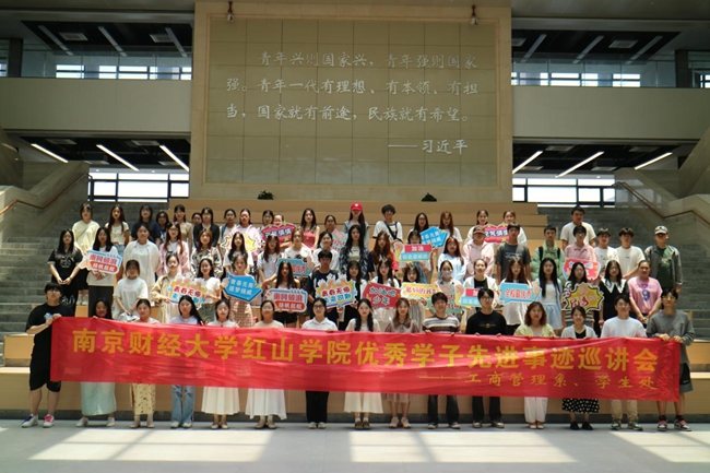 为构建红山学院优良学风建设新常态,充分发挥优秀学子先进典型的示范带动和价值引领作用,5月25日,我院工商管理系联合学生处在高淳校区一站式社区成功举办“传递朋辈力量,涵养优良学风”优秀学子先进事迹巡讲会。本次巡讲会邀请我院优秀学子代表陈安等7位同学主讲。巡讲会由学生处刘馈馈老师主持,学院团委书记千继贤、工商管理系团总支书记何玉凤、学生处教师代表以及学院百余名大一、大二学生参加分享会。