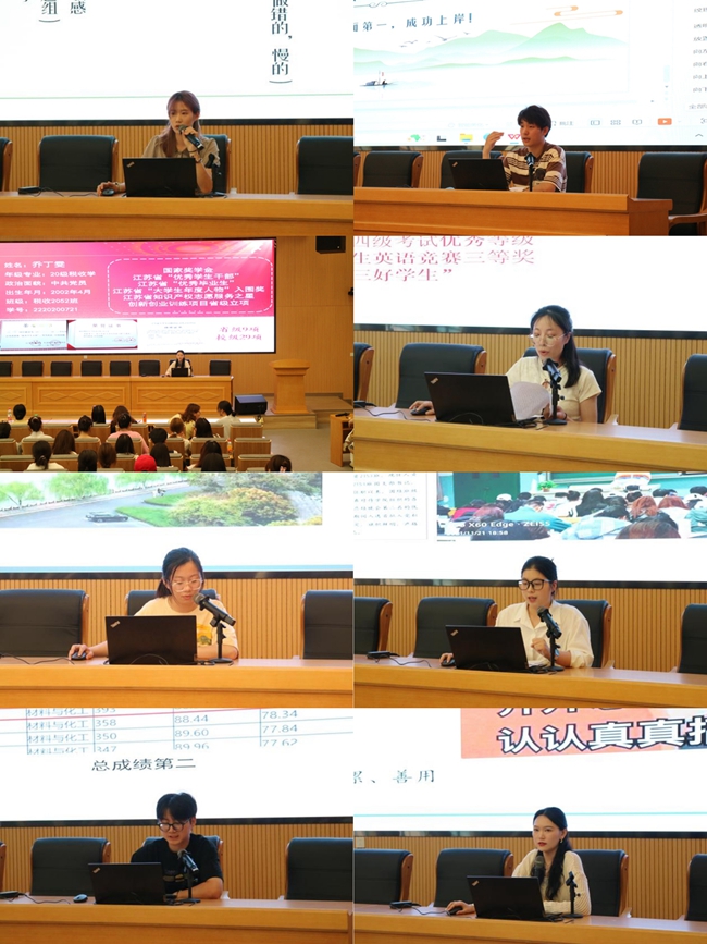 乔丁雯同学以《丰富多彩的大学生活》为主题,从综合学业、社会实践、学生组织、志愿服务等多方面讲述了自己大学四年的故事。她鼓励同学们要敢于挑战含金量高的专业类竞赛,积极参与志愿服务活动,考取有用的证书,提高课程绩点,丰富自身经历;陈安同学结合个人情况、专业和院校选择、备考经验总结三个方面讲述了自己的考研经历。他详细介绍考研专业以及院校选择,理工科专业备考技巧,备考心态和身体健康状态对于备考的重要性,给予在场学子考研的信心;顾雨佳同学以考公经验分享为主题,分别从行测和申论两个科目给大家讲解了公考的备考经验。重点剖析了行测模块课程选择、学习效率优化等内容,将自己一年来的备考经验与学弟学妹们倾囊相授。优秀学子们准备充分,分享各具特色,现场互动积极。