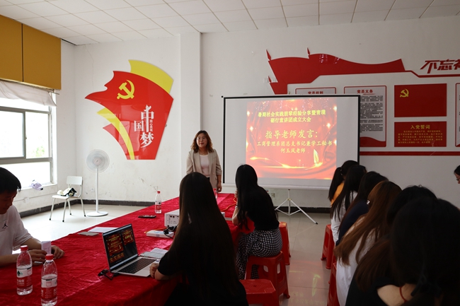 工商管理系团总支书记何玉凤介绍“青璞砺行”宣讲团