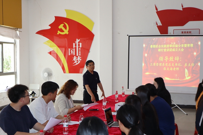 为传递实践经验,激发同学们参与社会实践的热情,6月14日中午,工商管理系在桥头校区一号站学生社区活动室举办暑期社会实践朋辈经验分享会暨“青璞砺行”宣讲团成立动员会。工商管理系党总支书记、系主任张太海,党总支副书记王海萍,团总支书记何玉凤,工商管理系2020级优秀毕业生刘金畅、徐颖和众多大一大二学生参加大会。会议由学生会主席林雨主持。