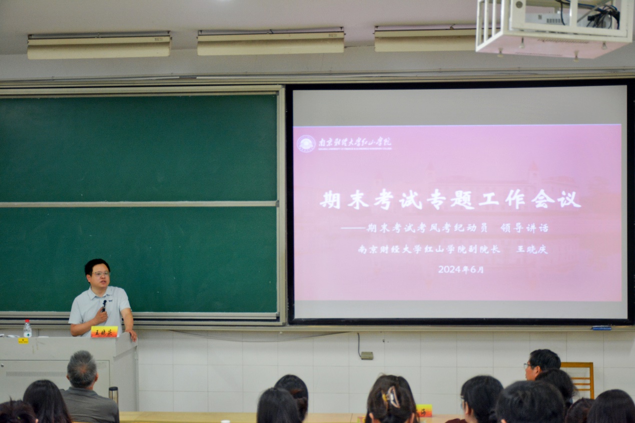 王晓庆副院长要求教职工要加强考试职责培训,明确监考纪律,规范阅卷流程,按时提交期末成绩。他强调辅导员和班主任要加强诚信教育,严肃考风考纪。