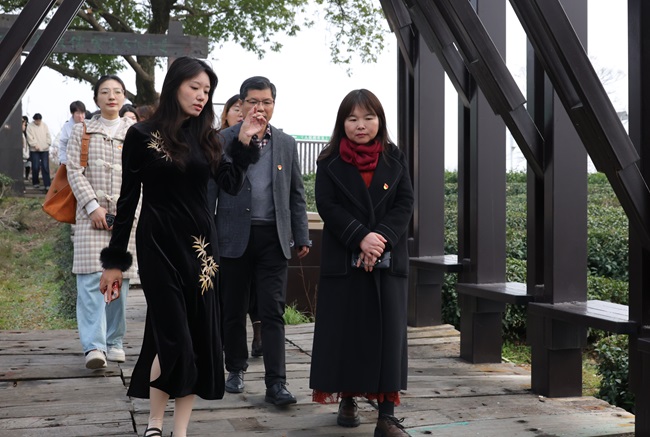 随后,全体师生党员沿着栈道来到著名反腐题材电视剧《人民的名义》剧中李达康书记陪同沙瑞金视察茶园场景的取景地——淳青茶园,体验采茶、制茶文化,重走反腐倡廉长征路。