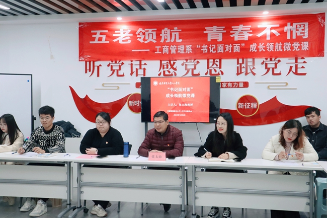 为进一步推进我院关心下一代工作,提高青年学生对当代社会的责任感,12月6日,关工委教师代表、工商管理系党总支书记、主任张太海教授前往一号站学生宿舍看望系部学生并在党团活动室讲授“五老领航,青春不惘——工商管理系‘书记面对面’成长领航”微党课。工商管理系党总支副书记王海萍、组织委员方砚琳,团总支书记何玉凤和工商管理系入党积极分子代表参加。