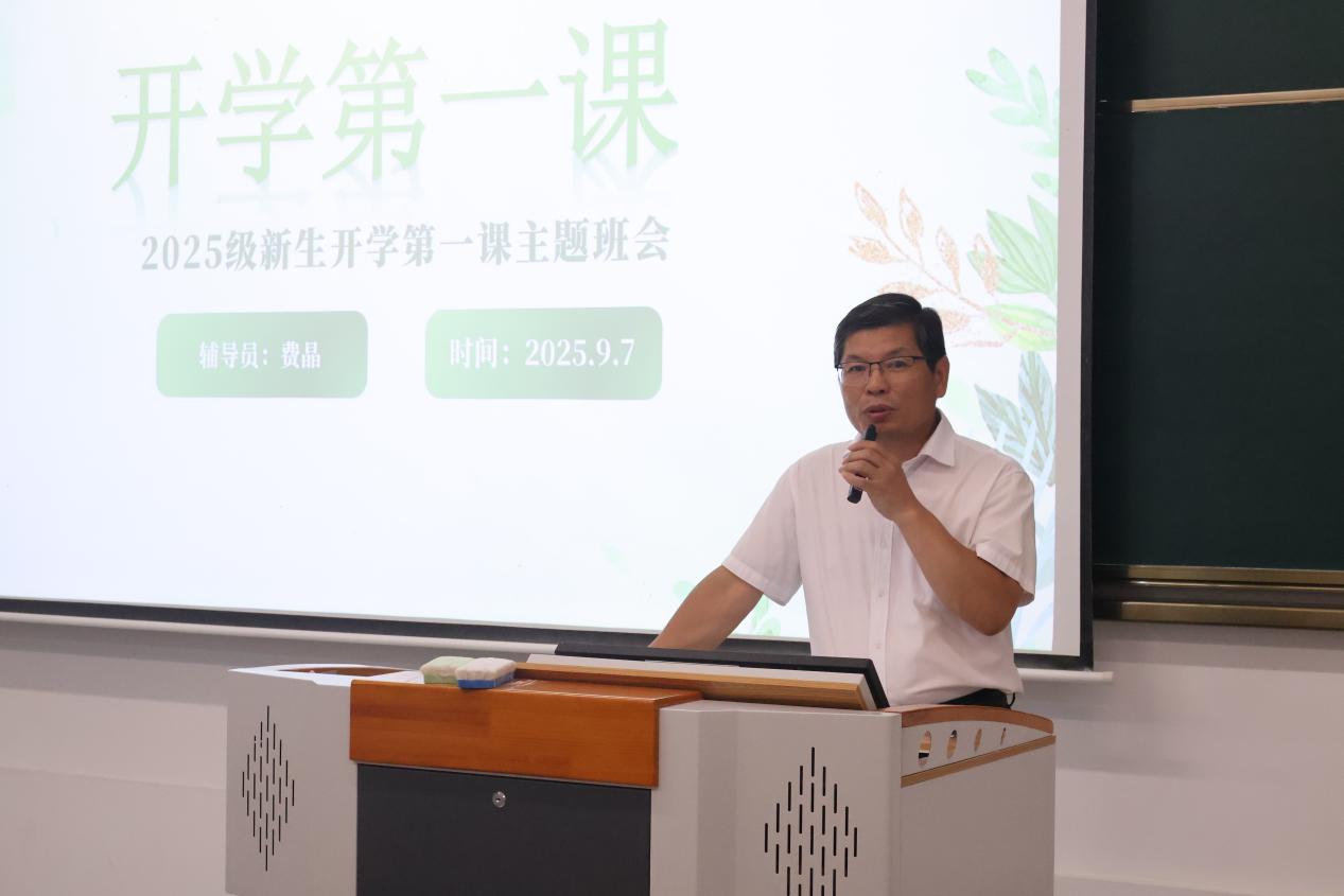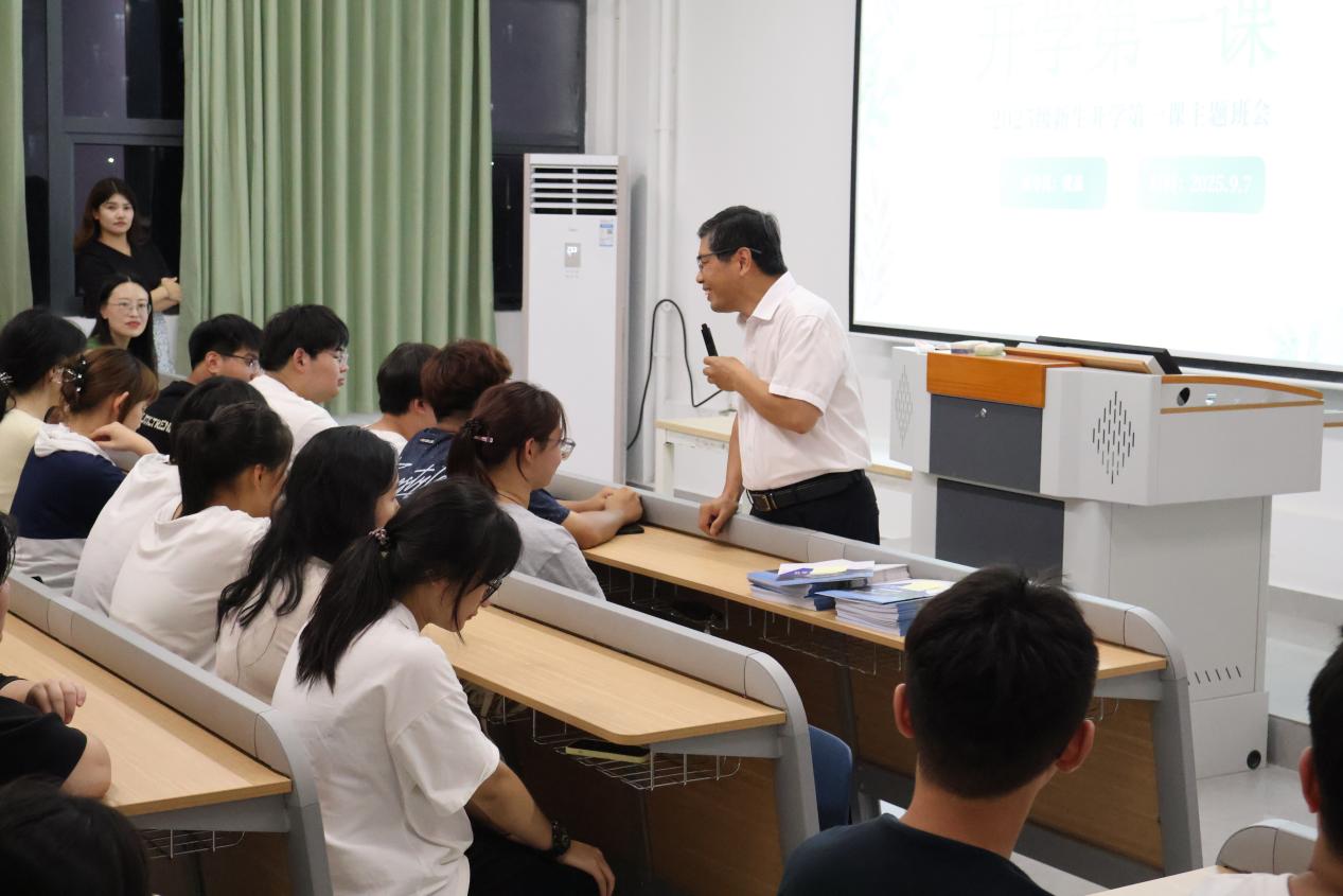 本次主题班会将思想引领、学业指导、安全教育与成长关怀融入其中,为新学期育人工作筑牢坚实起点。工商管理学院党总支书记、院长张太海首先对历经拼搏、成功步入大学殿堂的新同学们表示热烈欢迎,并就学院概况和专业设置等向同学们作了详细介绍,引导同学们树立专业自信和专业认同感。最后,他勉励同学们潜心问学、勇于实践、涵养品格、明德至善,希望同学们在追求知识的同时,更要注重个人品德的修养,努力成为一个有理想、有道德、有情怀、有担当的新时代青年。