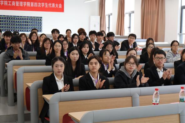 为深入学习和贯彻习近平新时代中国特色社会主义思想,动员并引领广大青年学生在实现中华民族伟大复兴的进程中发挥先锋作用,11月12日下午,工商管理学院第四次学生代表大会在智圆楼A区103顺利召开。本次会议分为预备会议、开幕式、第一次全体会议、第二次全体会议、第三次全体会议和闭幕式六项议程,由工商2353王栌翊同学主持。工商管理学院党总支书记、院长张太海,工商管理学院党总支副书记王海萍,工商管理学院团总支书记何玉凤以及我院22、23、24级共61名学生代表参加会议。