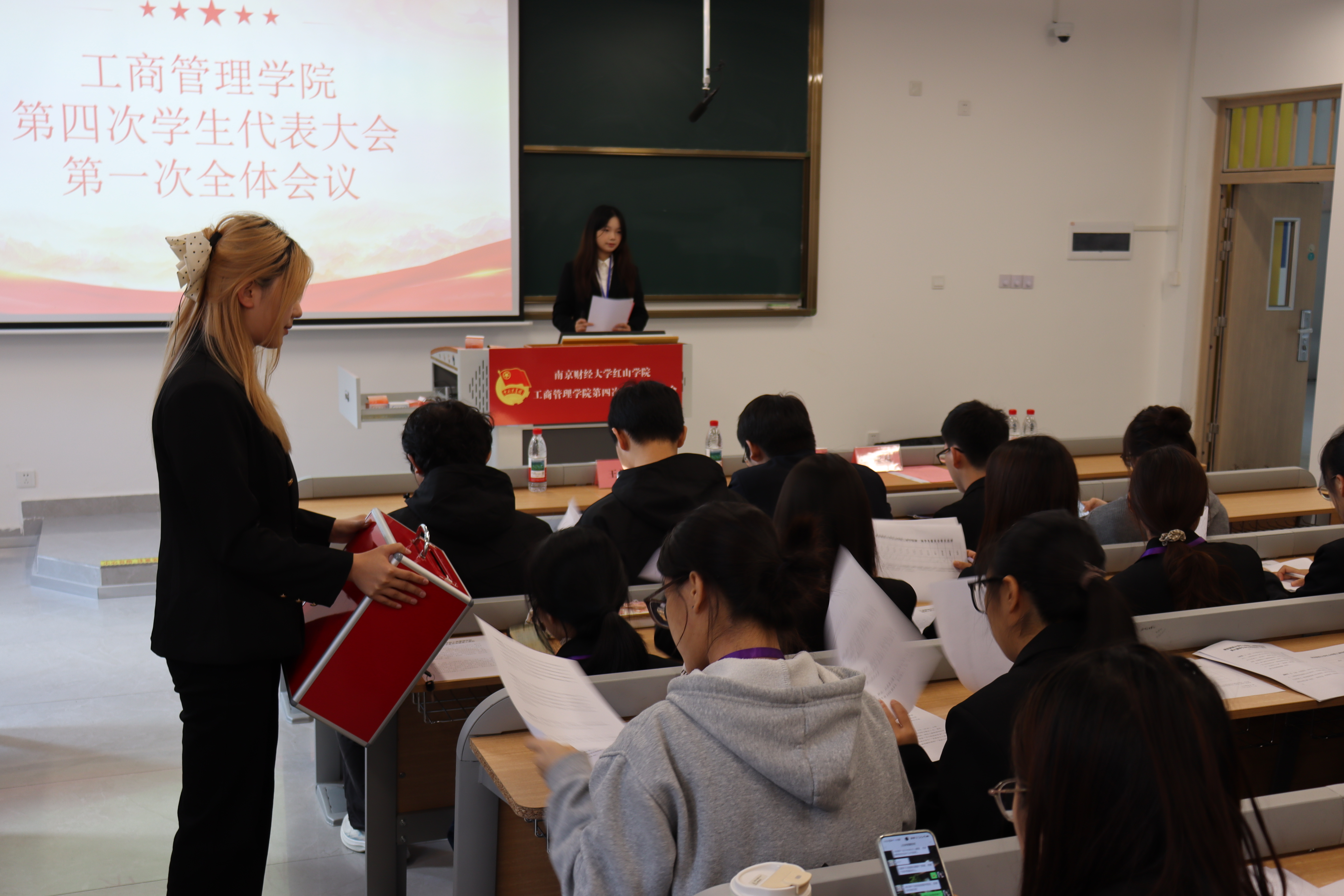 第一次全体会议听取了工商管理学院学生会上一届学生委员会代表刘海心同学的工作报告,桂梦冶同学代表工商管理学院第四次学生代表大会筹委会,宣读了广大同学反馈的各类问题。在大会第二次、第三次全体会议中,采用无记名投票差额选举出南京财经大学红山学院工商管理院新一届学生委员会委员及学生会主席。