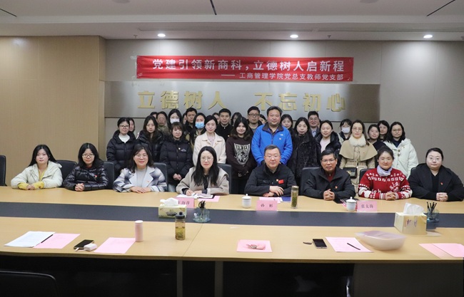为深入学习贯彻习近平新时代中国特色社会主义思想,全面落实立德树人根本任务,推动党建工作与新商科教育教学深度融合,3月1日下午,工商管理学院党总支教师党支部在图书馆第一会议室举办“党建引领新商科 立德树人启新程”主题党日活动。学院党委书记孙彬受邀出席,工商管理学院党总支副书记王海萍,教师党支部全体党员参加活动。活动由工商管理学院党总支书记、院长、教师党支部书记张太海主持。