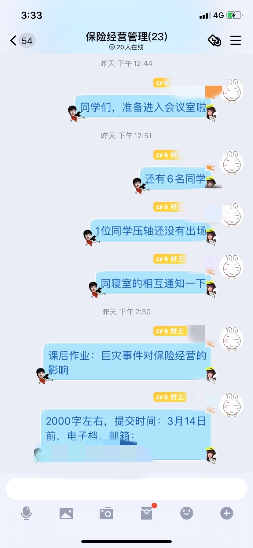 在线教学期间,金融税收系教师们通过雨课堂、群接龙等方式严格考勤制度,确保出勤率;课堂上教师们将热点话题与专业知识相结合,抓好专业教学过程的育人点,将思政点融入课堂;有效利用弹幕等方式,适时抛出问题,引导学生思考,实时与学生互动,调动学生积极性;通过布置课前预习内容、预留课后作业等方式,巩固学习效果,形成详细的过程化考核记录。线上教学氛围活跃,教学效果良好。