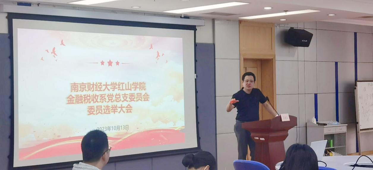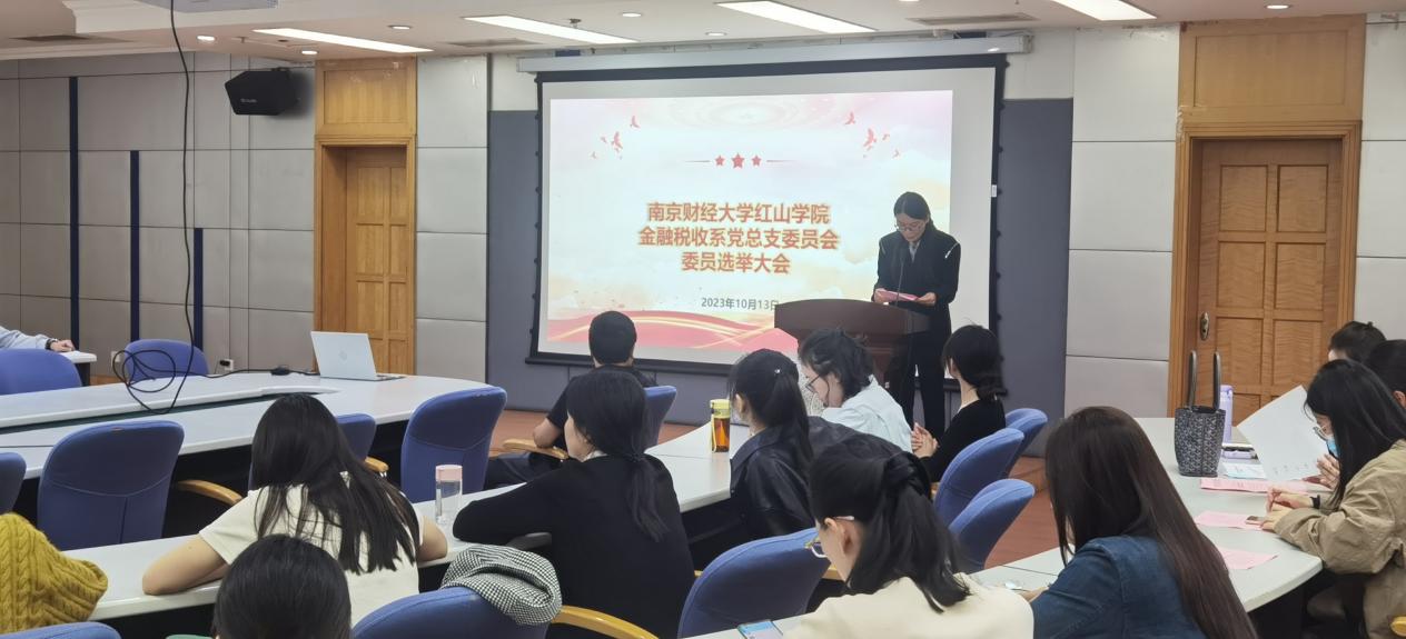2023年10月13日上午 10:00,金融税收系党总支在福建路校区综合楼217会议室召开召开党总支及下设党支部成立暨委员选举大会,会议由金融税收系党总支副书记胡婉君同志主持,金融税收系全体党员参加了会议。