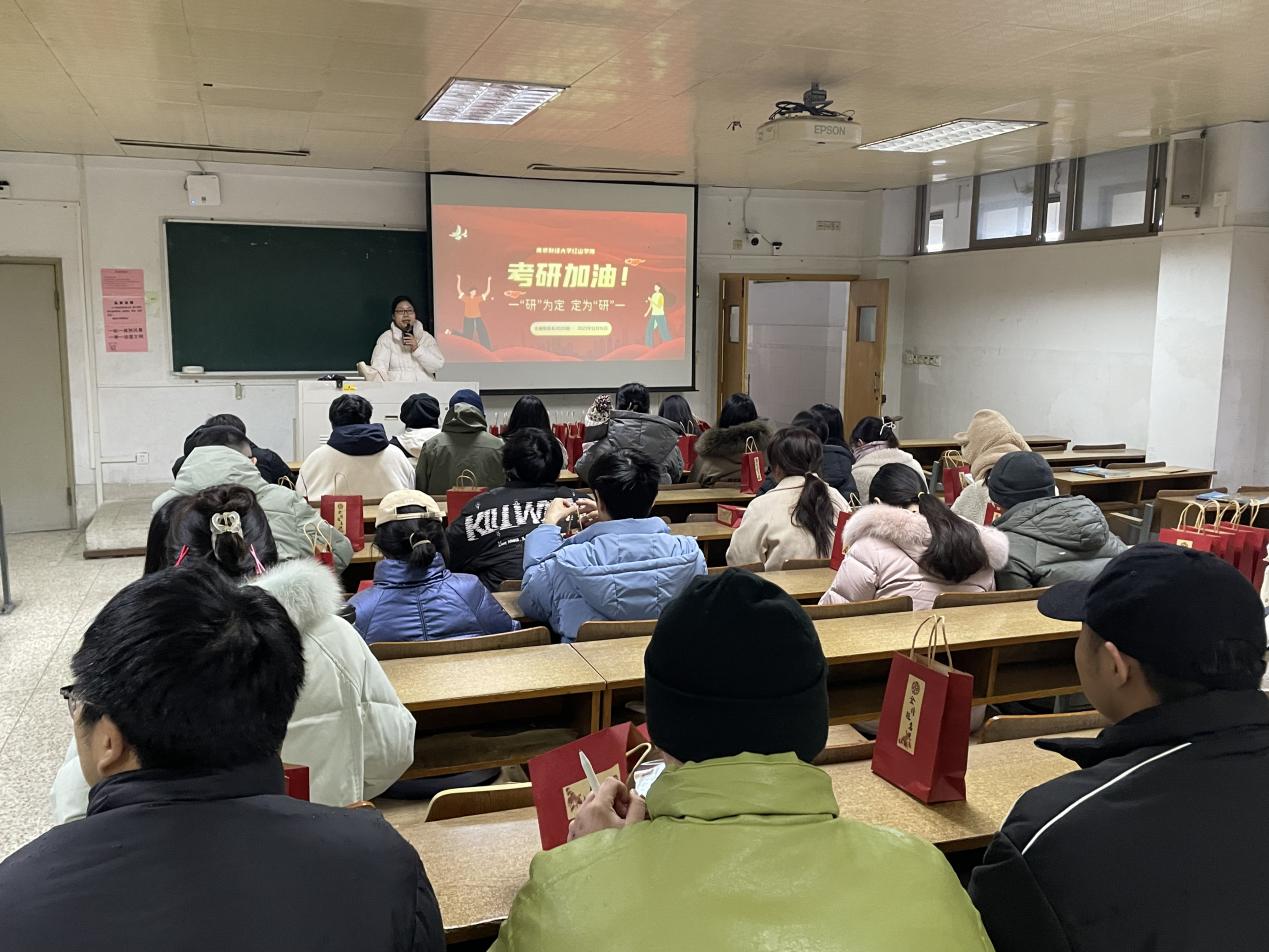为鼓励我系2024届考研学生积极备考,调整备考状态,12月15日上午,金融税收系党总支于福建路校区J2-103开展以“一研为定,定为研一”为主题的考研加油会活动,为考研学生送温暖送祝福。会议由我系大四辅导员陆学琼老师主持召开,党总支组织委员许艺蓝及所有大四辅导员参加。