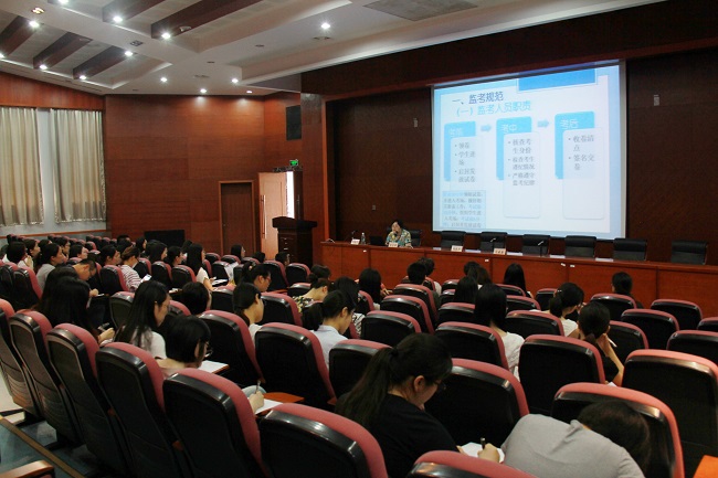 杨抚生教授根据南京财经大学的有关考试工作规程与阅卷规范及我院的考试考务实际情况,对监考人员职责、考试纪律要求、违纪作弊认定等监考规范及各环节的阅卷规范进行了详细解读,特别对试卷情况分析、成绩认定、试卷归档等进行了强调。
