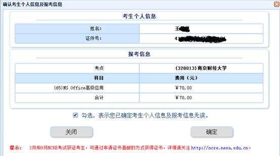 5、再次核对报名信息,无误后勾选,点击“确定”按钮