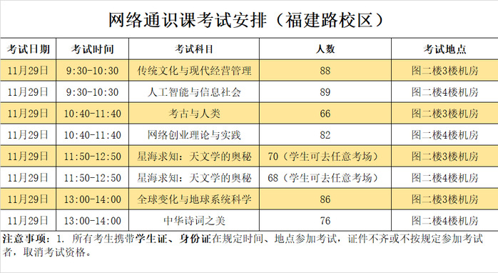 网络通识选修课考试安排(2020-2021-1)