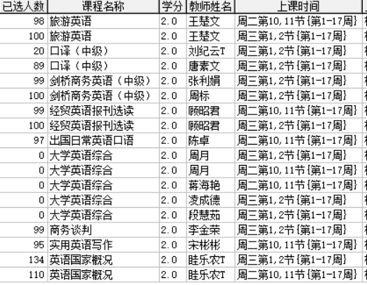 2021年6月CET-4成绩,8月26日10:00可网上查阅,CET-4成绩未达425分的学生,只能选修《大学英语综合》;CET-4成绩达425分的非英语专业的学生必选一门其他外语选修课。原来已选《大学英语综合》的,已经清除。具体课程安排如下(选课额满为止):