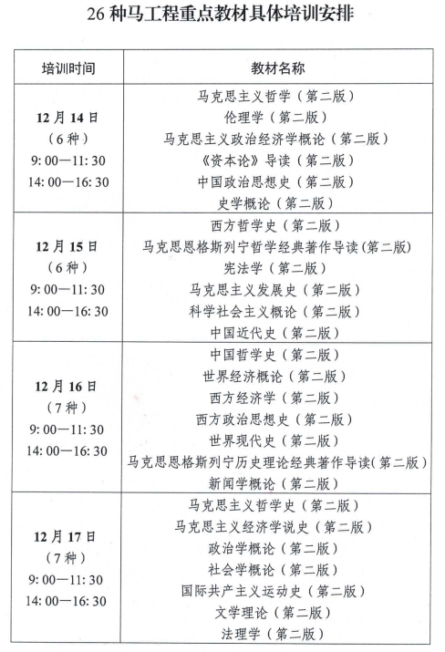 为落实教育部26种马工程重点教材任课教师培训工作,现将具体工作通知如下: