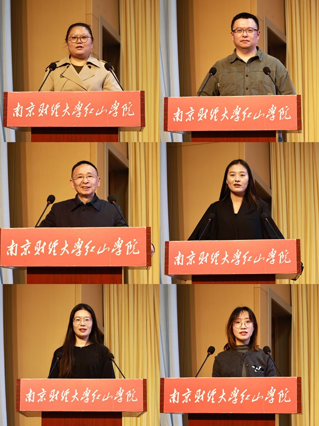 法学院教师李寒冰,金融税收学院教师李思捷,国际经贸学院教师尚卫平,会计学院教师杨文洁,工商管理学院辅导员经正新,党委学生工作部、学生处处长助理葛洪鑫等教师代表结合教育教学、学生服务、行政管理等一线工作实际,以鲜活案例诠释了“躬耕教坛、乐教爱生”的师者情怀,展现了我院教师以德立身、潜心育人的精神风貌。