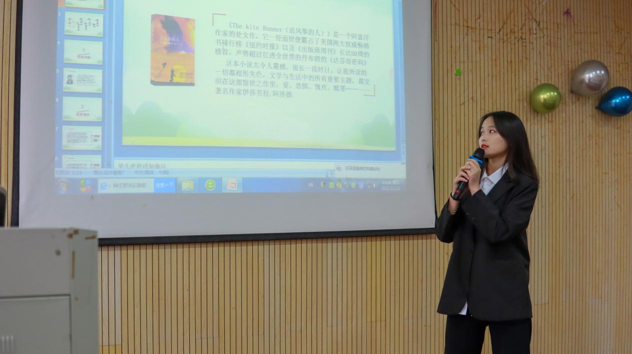 活动开始,各位参赛者就自己读过的印象最深刻的书籍,拿起话筒,打开PPT,利用7-8分钟分享自己的观点与感受。每一位同学分享的内容都有着自己的特色,有的伴着柔美背景音乐讲述书中温情故事,有的坚定提出自己对于书中人物看法,有的解答人生道理、处事规则!