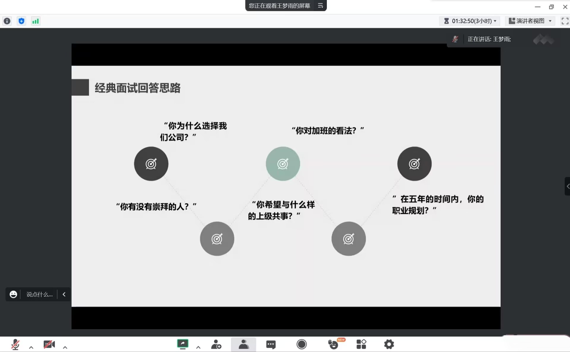 5月29日晚,会计系通过腾讯会议线上平台举办“毕业季求职技巧引航”讲座,融创服务集团胶东公司招聘高级主管王梦雨女士应邀主讲。本次讲座由会计系学工秘书王颖老师牵头并主持,我院高年级学生积极参与。
