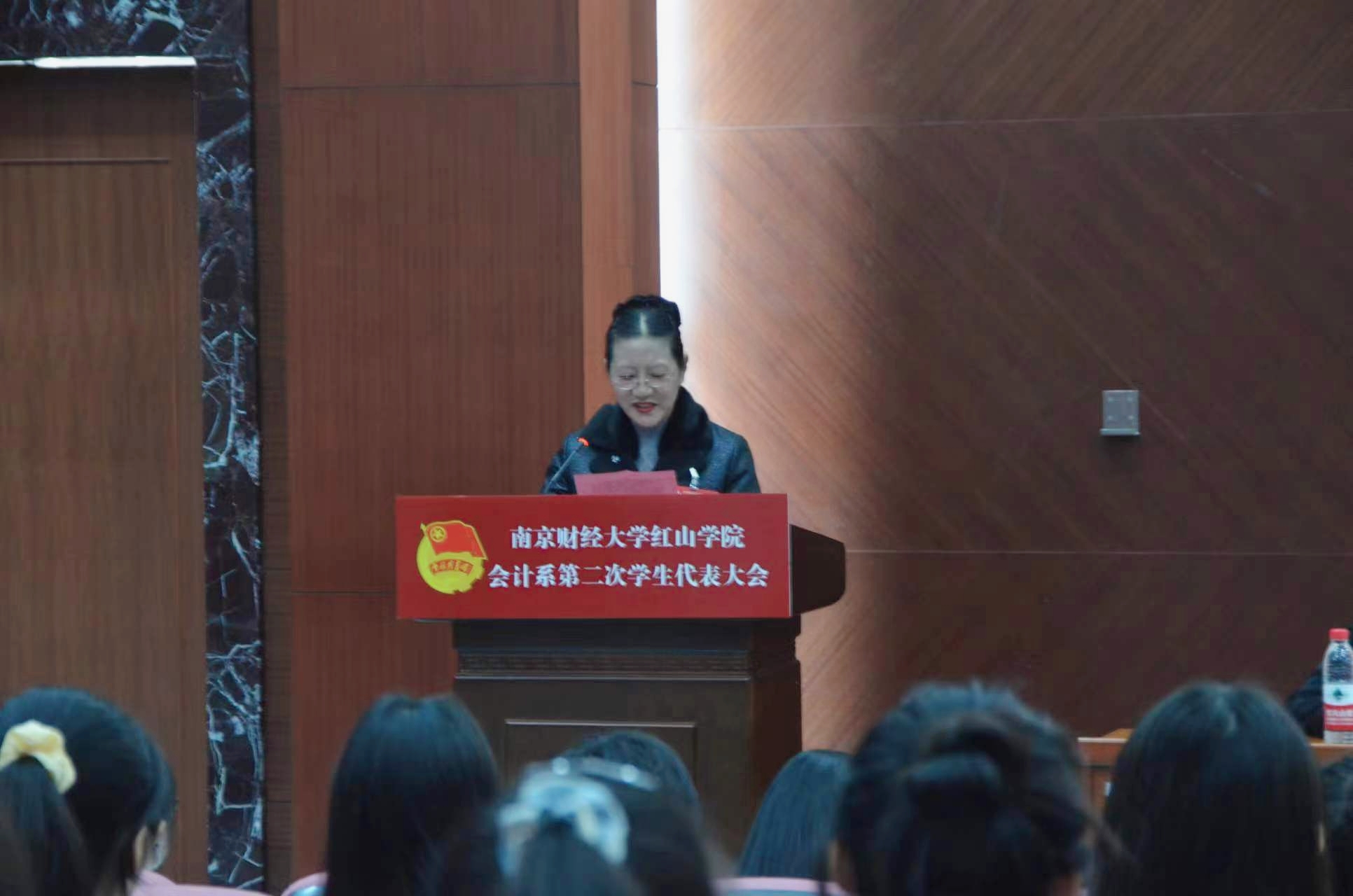 2023年11月16日,南京财经大学红山学院会计系第二次学生代表大会在桥头校区四教报告厅隆重举行,我系各年级共52名学生代表齐聚一堂。会计系系主任孟翠湖教授,院团委书记千继贤,系党总支副书记王颖,院系团学工作指导老师吴蓓、李景程,院学生会代表应邀出席开幕式。大会由系学生会魏晨同学主持。