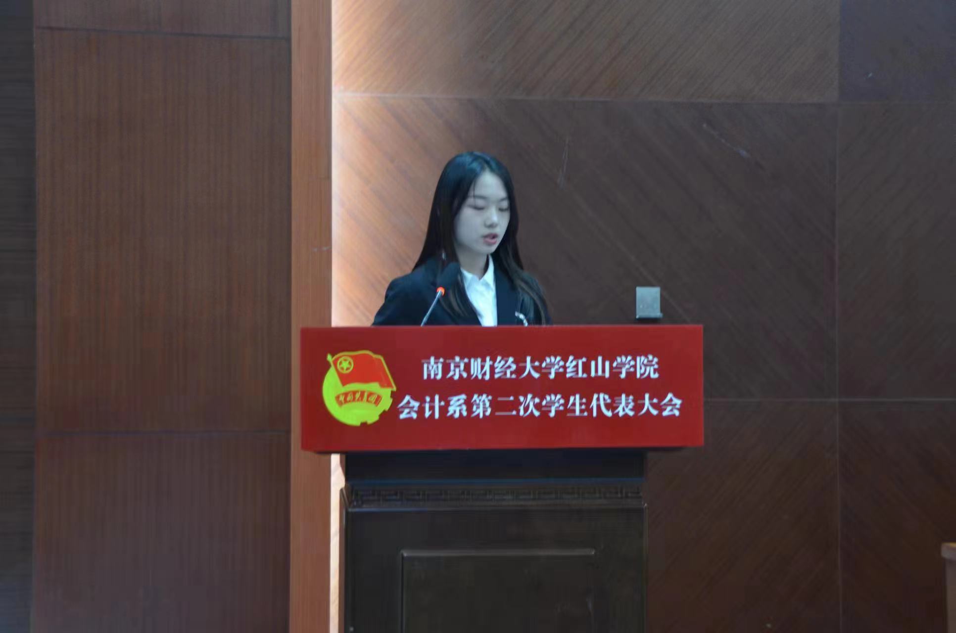 开幕式后,大会分别召开了第一次、第二次和第三次全体会议,听取并审议了上一届系学生会主席柳文同学所作的学生会工作报告。报告从思想引领、自身制度建设、参与校园文化建设等方面回顾总结了过去一年的系学生会工作,同时规划了下一阶段学生会各项工作的传承和创新。大会期间,与会代表认真讨论并表决通过了《南京财经大学红山学院会计系学生会章程(草案)》和《会计系第二次学生代表大会提案工作报告》,选举产生了新一届会计系学生会主席、学生委员会委员以及参加学院第十四次学生代表大会的代表。