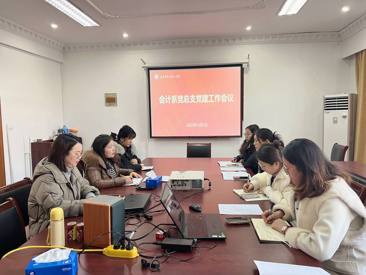 12月1日上午,会计系党总支在福建路校区教A-220会议室召开党建工作会议。学院党委副书记、副院长、会计系党总支书记王晨婷出席会议并讲话,总支部委员会全体委员参加了会议。会议由党总支副书记王颖主持。