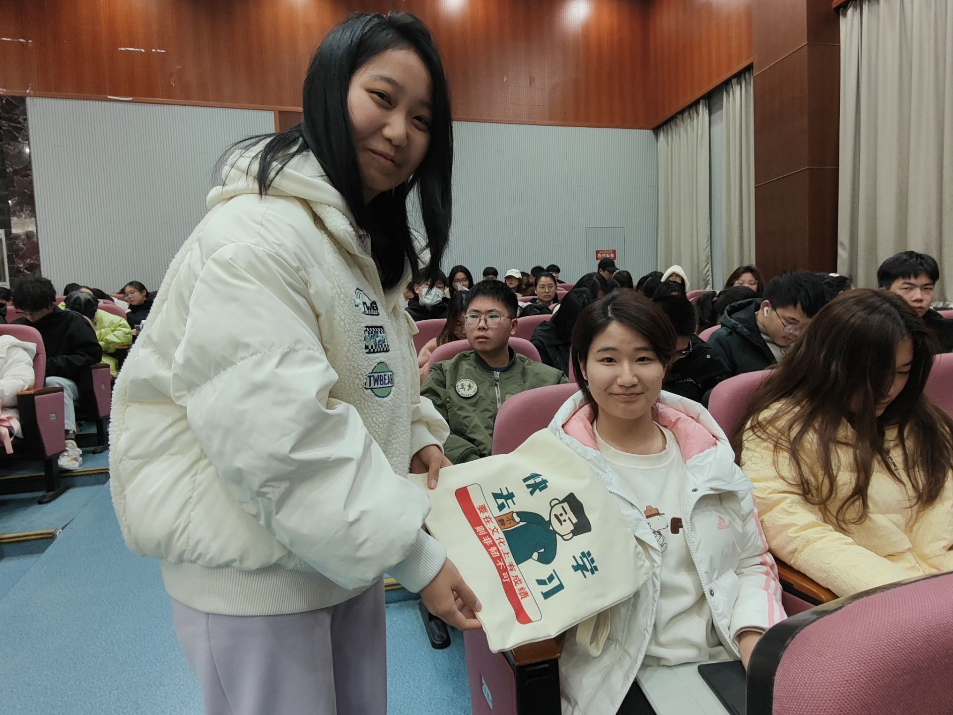吴朦朦老师系统解析了校内选拔赛的流程。她指出,选题是考查学生了解社会现状、关注社会民生、解决社会问题的意识、能力和水平的重要环节,选题不仅要做到专业背景与社会热点紧密结合,还要多思考、多调研,以解决实际问题为导向,综合评估其可行性。随后,吴老师为同学们构建了项目计划书的逻辑框架,并提醒同学们答辩前应做足准备,既要利用PPT、设计等可视化手段有效提升项目成果的展示效果,又要掌握答辩技巧,用不怯场的表达能力和懂得变通的临场发挥给评委们留下较好印象。互动环节中,现场同学围绕参赛过程、项目开展等方面的问题积极提问,吴老师一一耐心解答。系学生会为参与互动的同学精心准备了小礼品,现场反响热烈。