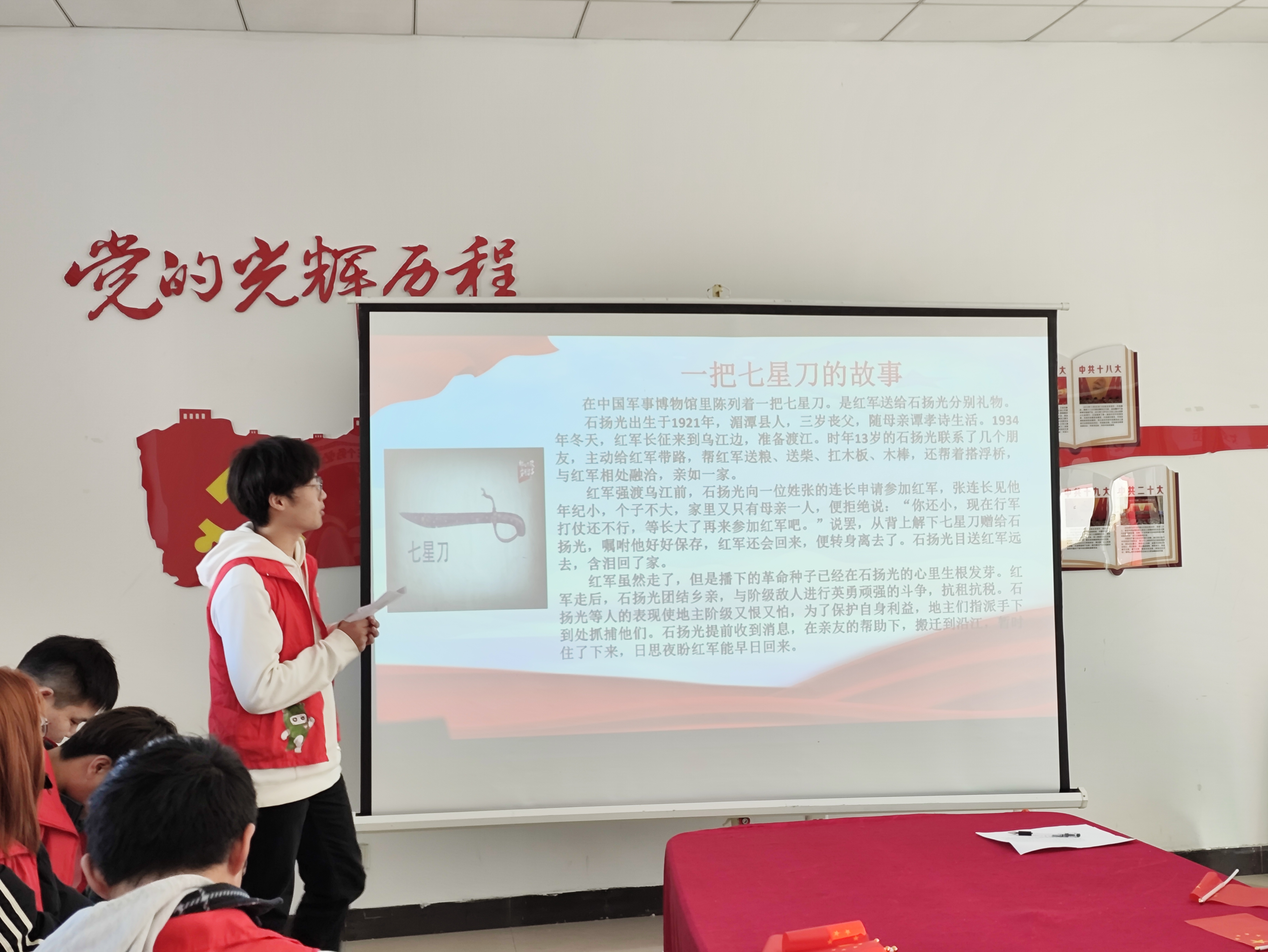 从遵义会议召开的历史背景、历史意义、精神内涵到时代价值,宣讲团通过精神宣讲、问答互动、礼品奖励等方式调动现场同学的参与热情。伴随着宣讲团成员们生动的讲解,在场同学们重温了这段具有伟大转折意义的革命岁月。《一把七星刀的故事》和《红军坟故事》让在场师生对“坚定信念、坚持真理、独立自主、团结统一”的遵义会议精神内涵有了更深刻的理解,引导大家在追溯红色记忆、感受红色精神中主动思考如何走好新时代的长征路。