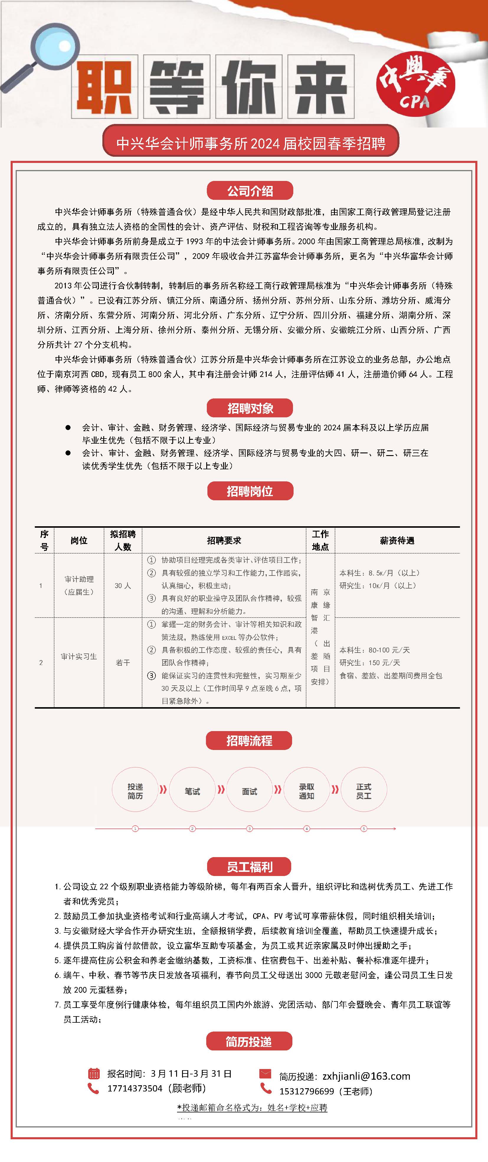 招聘公告丨中兴华会计师事务所2024届校园春季招聘