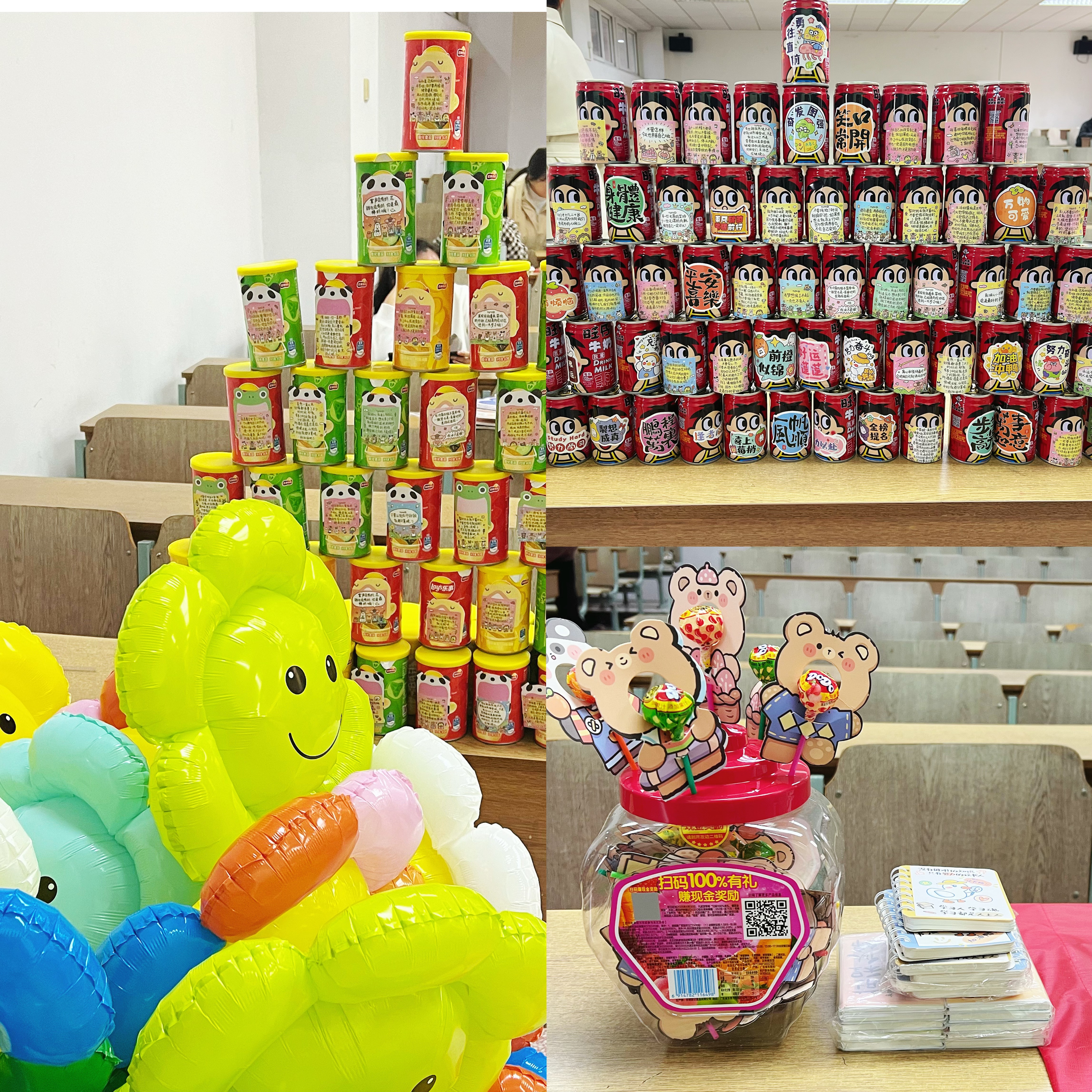 班会伊始,参会学生和老师们签到留影。伴随着温馨的音乐,毕业班辅导员与到场同学亲切交谈,对同学们认真备考、勤奋刻苦的精神风貌予以肯定,并发放励志书签和小本,送上零食和糖果,希望为考研和求职的学子赶走倦怠,给予温暖。
