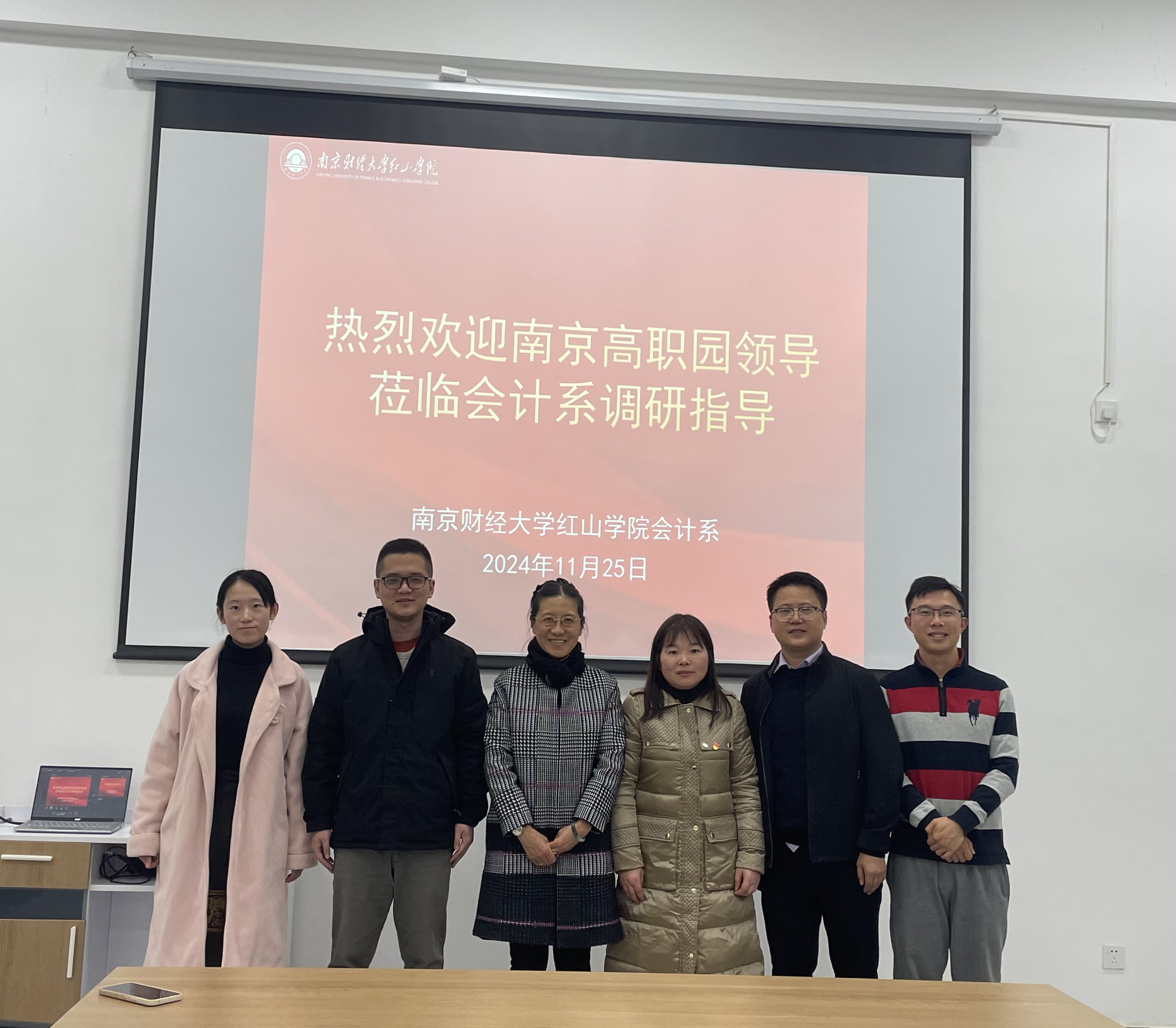 为加强校地供需对接,深入推动协同发展,11月25日下午,会计系邀请南京高职园管委会机关支部书记、党政办主任、综合发展服务中心主任吴凯,宣传干事、团工委委员黄启睿来校交流座谈。学院党委副书记、副院长、会计系党总支书记王晨婷、会计系主任孟翠湖会计系团总支书记李景程、专任教师李倩慧参加座谈会。