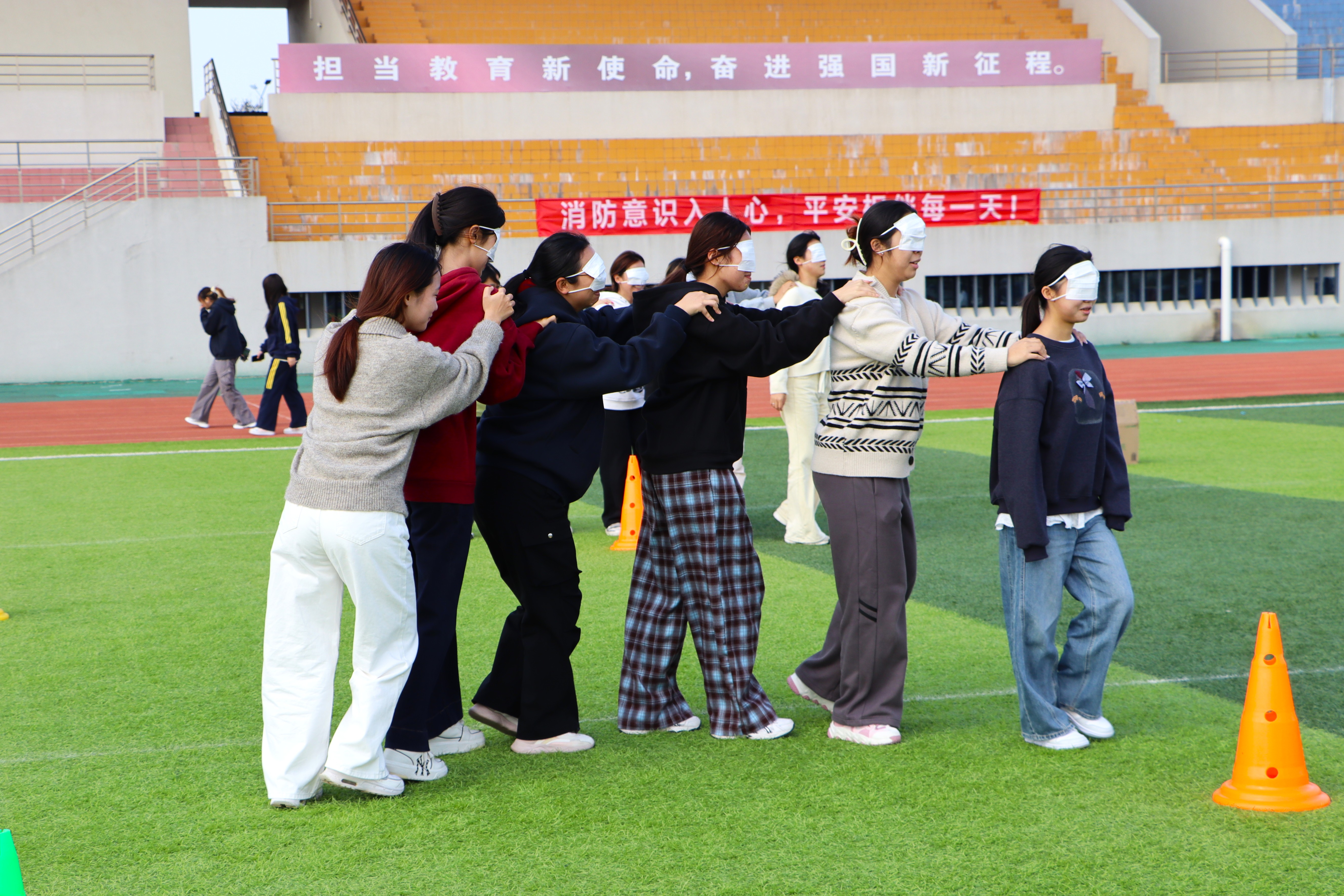 为深入践行“五育润心”育人理念,创新学生身心健康教育载体,11月11日,会计学院在学校体育场举办“以动‘会’心 聚力焕新”心理体育融合拓展活动。近30名学生踊跃参与,在运动与协作中收获成长与温暖,于肢体互动中获得心理滋养。