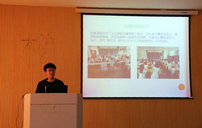 会议伊始,第一支队伍“学党史,感党恩,跟党走”庆祝建党95周年主题教育宣传进社区小分队为大家讲述了实践过程,他们在社区进行宣讲活动,发扬党的精神,并以问卷调查形式了解居民对党的认识,培养了吃苦耐劳的精神;由毛莉带领的徐风汉韵小分队利用11天的时间参观了徐州云龙区汉文化景区、楚王陵和徐州博物馆,并亲自体验了拓片的制作,身临其境地感受到了汉画像石的精妙绝伦,领略了汉文化的深厚底蕴。董语同学则和其他7位同学一起组成了江豚保护小分队参加了“留住江豚微笑,呵护长江生命”江豚保护夏令营,他们在江心洲听取了讲座,举行了别有心裁的演出,并对周围村民进行问卷调查,通过他们的努力,由七所高校实践团合作完成了三个专项课题科研,也提高了人们对于保护河流、保护珍惜动物的意识。