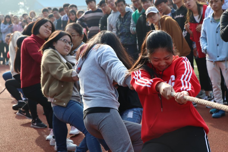 比赛共分为两天。28日进行拔河初决赛,48支参赛队伍充分表现出了不抛弃不放弃的比赛精神,一声声呐喊,一次次用力都承载着整个班级的荣光。29日进行跳大绳、绑腿跑比赛更加考验班级同学的默契,十人轮流在飞速甩动的绳子间跳动,每一次下蹲,每一次跃起都承载着胜利的曙光。红灿灿的塑胶跑道见证了班级的团结与友谊,碧绿的草坪烙下了班级永不磨灭的青春痕迹。