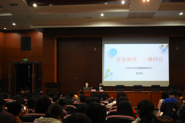 2017年11月7日晚18时整,由心理与健康协会举办的“有你相伴,一路同行”心理知识讲座在四教报告厅成功开展。本次讲座的主讲人为江苏大学心理健康中心詹方园老师。詹老师作为国家二级心理咨询师,就大学生常见情感问题,作出专业性指导。