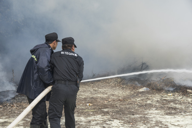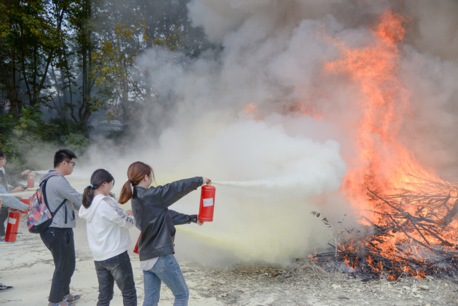 动员大会结束后,朱正飞副主任宣布消防安全演习正式开始。同学们随后来到演练场,在院领导和义务消防员的带领下,分批有序地参加消防安全演练,亲身实践灭火器材的使用。