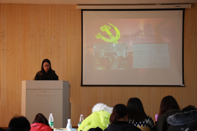 各支部代表按抽签顺序上台展示。各班级都为此次大会做了精心的准备,通过幻灯片或视频的形式向在场的同学们展示了各支部党团建设情况、学习十九大情况以及丰富多彩的班级课余活动,真实而全面地反映了各支部的精神风貌。各支部从“党团”、“班风”、“学风”、“活动”四个班级建设方面进行。独特的是,每一部分都由优美的诗词概括,给同学们带来别样的美的享受。