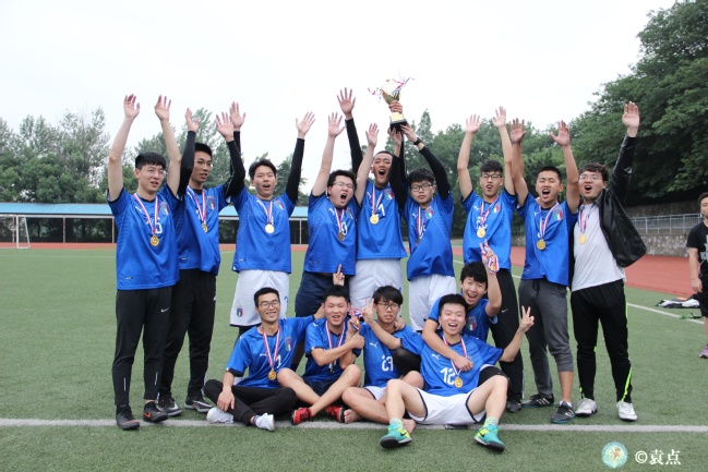 飞扬的汗水,酣畅的运动,即便摔倒、扭伤,运动员们依旧坚持不懈,真正体现了运动精神。相信通过这次活动,会有更多的人了解足球并热爱足球。活动最后,足球社社长为获奖队伍颁发奖杯与奖牌并合影留念。