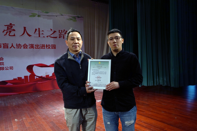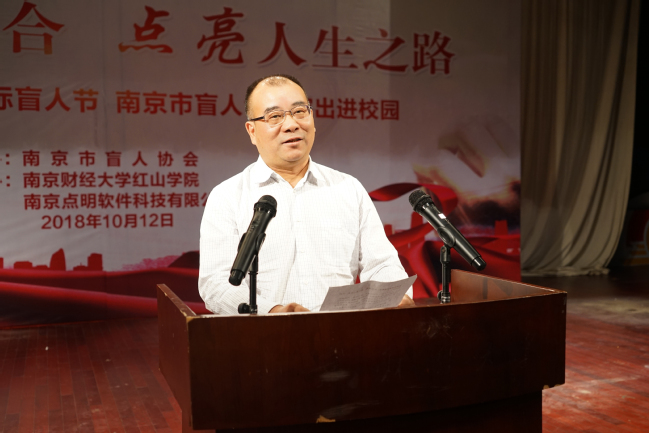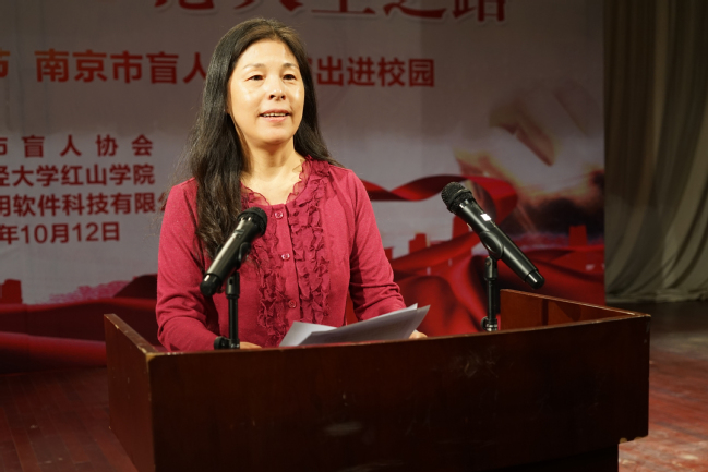朱京芝书记代表南京市盲人协会对我院提供演出场地和设备表示感谢,希望全体师生能够与盲人朋友们互相学习,热爱生活,自尊自强,携手共建美好社会。