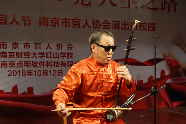 10月12日,南京市盲人协会应邀于福建路校区大礼堂举行 “促进残健融合,点亮人生之路”文艺汇演。南京市残联党组书记、理事长朱京芝,南京财经大学桥管会主任、红山学院党委书记鞠明富,党委副书记、副院长高永东,副院长王晓庆出席文艺汇演,福建路校区师生观看了此次汇演。