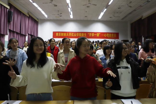 随后,李老师举例了大学生常见的心理困扰。其涵盖了学习与生活多个方面,涉及老师、同学、舍友等多类人物。然后进一步指出处理这些问题的方法。在活动的最后又通过鼓励学生大声说出别人的优点,来引导他们去发现生活中的美,为和谐关系的建立奠定了基础。