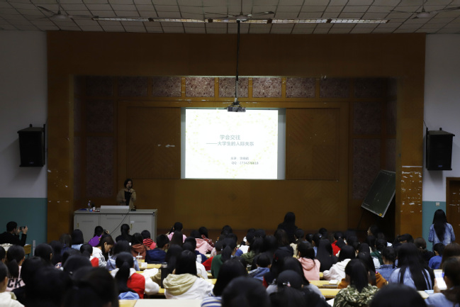 2018年10月31日18时30分在桥头区三教报告厅举办名为“学会交往——大学生的人际交往”的讲座,该活动主要由心理与健康协会负责,并邀请了李晓晴老师作为主讲人。该活动贴近学生生活,具有广泛的现实意义,因而在活动初期就赢得了大家的广泛关注。