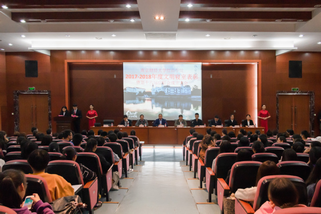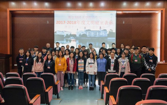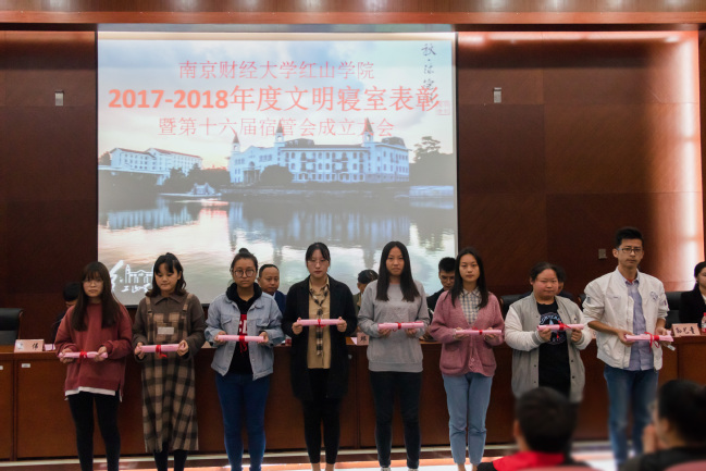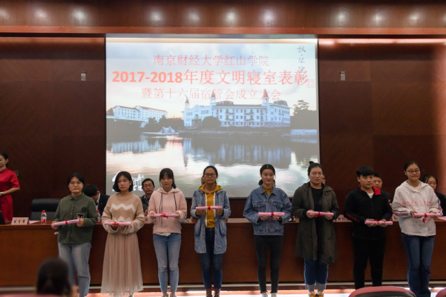 大会在雄壮的国歌声中拉开帷幕,学生处处长邱宁宣读《关于表彰2017-2018学年“文明示范寝室”“文明寝室”“寝室文明标兵”“寝室先进个人”的决定》。主席台领导、老师为获得表彰的学生代表颁奖。
