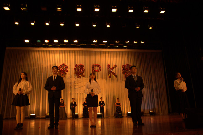 随后,进入第二个环节:朗诵展示,即考查声音条件。实习生们深情款款的朗诵一篇篇著章,用饱含感情的声音表现了自己对广播站工作的无限热爱。朗诵环节结束后,激动人心的公布锦鲤环节开始,幸运儿们获得了免费点歌五首,另赠祝词的奖品,其中只有唯一的超级锦鲤可获得超级大奖,即包场一天且获定制祝词。随后,广播站陈芷若学姐带来的中场歌曲《爱要坦荡荡》,为本场晚会更添光彩。随着18级全体实习生《仰望星空》合唱的进行,晚会步入尾声。