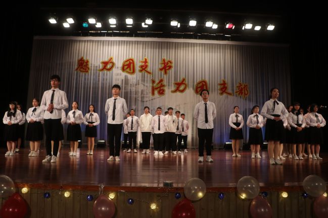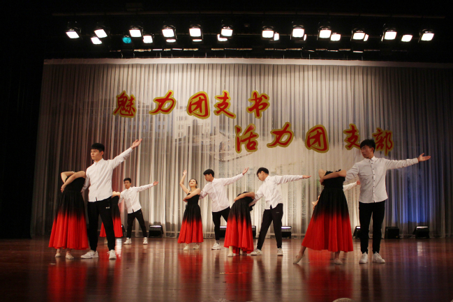 此次晚会共分为两个部分。“魅力团支书,活力团支部”的开场视频作为导入。晚会伊始,由青春组合带来的开场舞点燃了现场的氛围。会计1851班的《少年中国说》,朗诵与说唱相结合,彰显出中国少年的光芒万丈。会计1856班带来的故事《足迹》,字里行间里描述着改革开放以来中国人民奋斗的四十年。金融1853班的小品《你的模样》以搞笑的风格生动形象地演绎出无论时代的变迁,教师们都是初心不变、真诚育人的模样。爱可以跨越种族和边疆,温暖人间,会计1852班的歌舞《爱的和谐乐章》让在场的每个人都感受到了他们将以满腔的热血共同筑起“中国梦”。