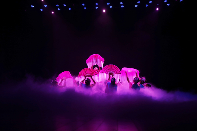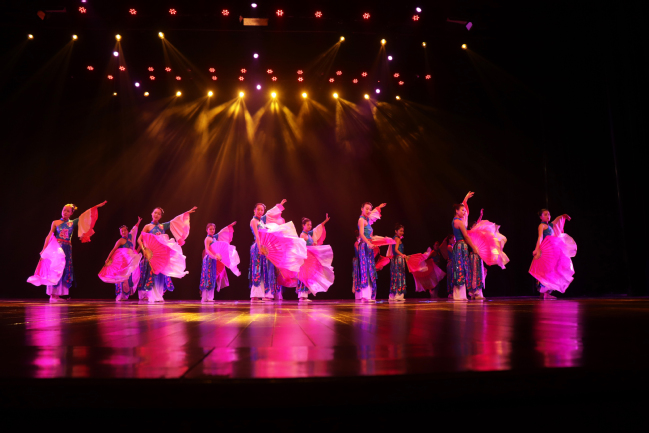 经过初赛的激烈角逐,共有14支代表队进入决赛。我院参赛队伍给观众们送上的精彩古典舞蹈《秀色》,一开场就惊艳了全场。只见烟雾缭绕之间,一位位身姿袅娜的姑娘挥动着舞扇缓缓走来,舞蹈柔美缠绵,活泼灵动,整齐划一的舞姿展现了少女青春的活泼。