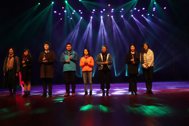 最后,我院舞蹈《秀色》取得了优异的成绩,荣获二等奖。指导老师潘怡代表我院上台领奖。校领导为获奖代表队颁奖并合影留念。